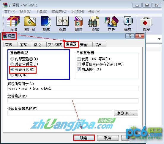 为什么双击打开压缩文件会乱码?原因就在于误设置了使用WinRAR的查看器来打开压缩包里的文件。