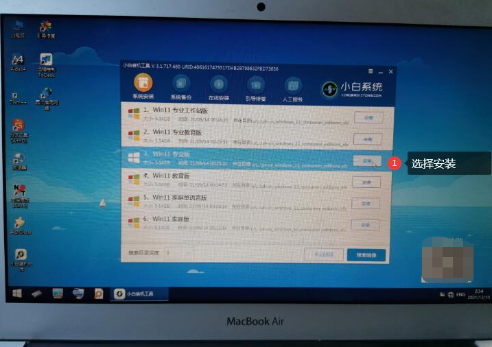 5、分区完成后保存设置退出,打开pe桌面上的小白装机工具,选择需要安装的win11系统点击安装。