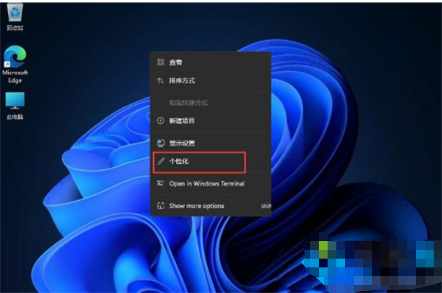 1、在桌面空白处点击右键,然后点击选择【个性化】;