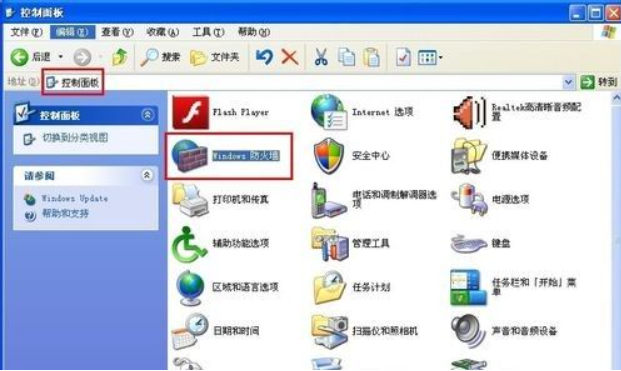 2.在控制面板中点击“windows 防火墙”;