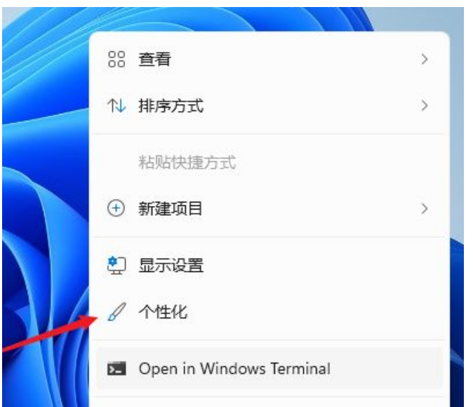 1.在桌面上,在菜单那点击打开个性化。