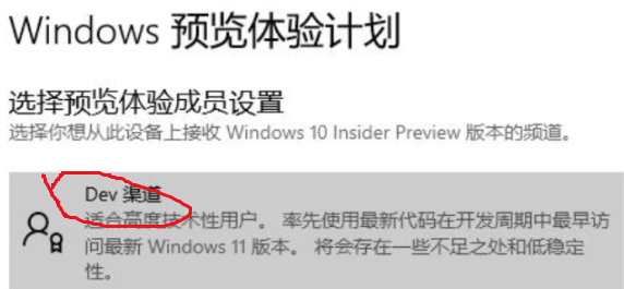 4、点击“开始”,选择“dev”渠道。系统变会自动升级win11系统,我们只需等待升级完成即可。