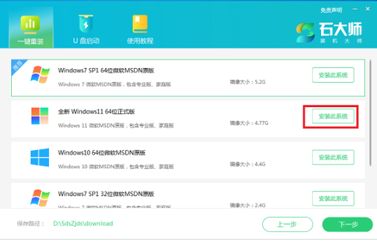 1、进入石大师工具,选择win11系统下载;
